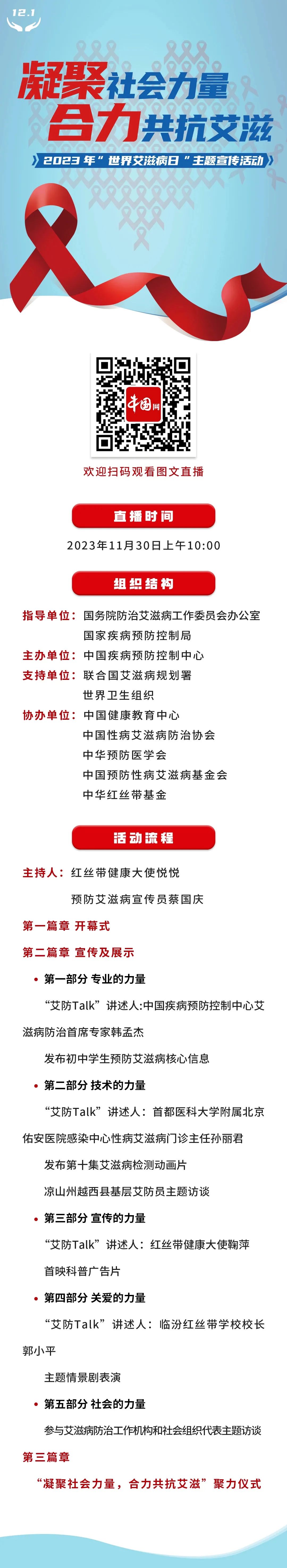 2023年“世界艾滋病日”主題宣傳活動11月30日上午10:00線上直播