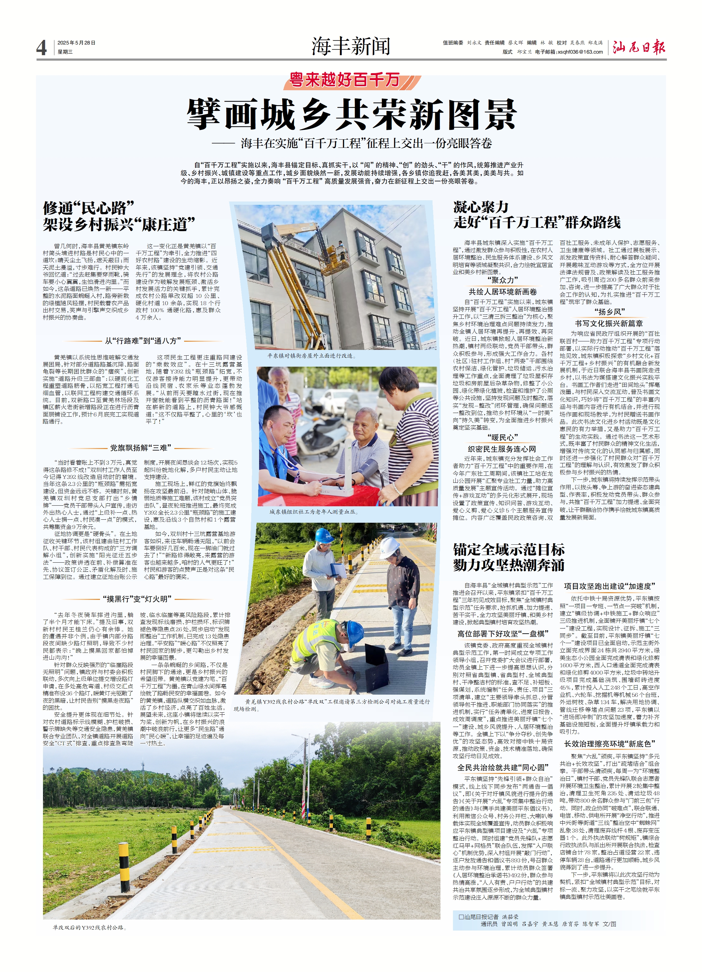 自“百千萬工程”實施以來,海豐縣錨定目標、真抓實干,以 “闖” 的精神、“創” 的勁頭、“干” 的作風,統籌推進產業升級、鄉村振興、城鎮建設等重點工作,城鄉面貌煥然一新,發展動能持續增強,各鄉鎮你追我趕,各美其美,美美與共。如今的海豐,正以昂揚之姿,全力奏響 “百千萬工程” 高質量發展強音,奮力在新征程上交出一份亮眼答卷。