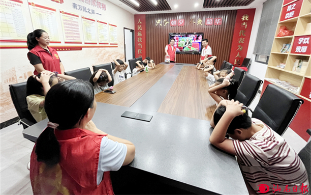東坑鎮東坑社區組織小朋友開展“開學第一課”,普及安全知識。