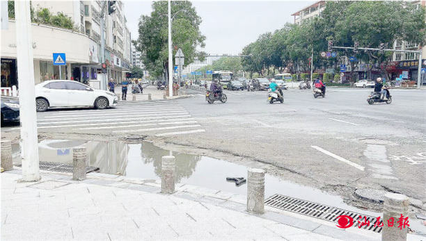 昨日,記者在市區公園路看到,有一大塊凹陷地帶,雨水囤積,路人紛紛繞坑行走。據了解,該地段施工圍欄拆卸后,人行道出現了部分凹陷,導致雨后積水。希望有關部門加強市政設施監管力度,還原道路平坦“面目”。
